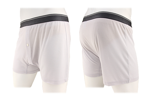 穴あきタイプふにゃちん使用、白系トランクスの下に装着したイメージ写真 白系のパンツでもほとんど目立ちません。