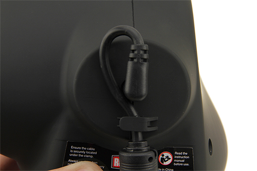 ACアダプタの取り付け方法が少し特殊。 まずは、コードをここへ引っ掛けます。