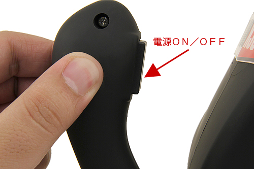 持ち手の先端に主電源スイッチがあります。ON/OFFのみのシンプル操作。