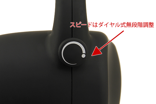 主電源だけでは動作せず、ダイヤルを回すと動作を開始します。スピードはダイヤルを回すと無段階で調整できます。