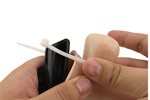 ここからオマケ。 他のアダルトグッズを固定できないかと思い、吸盤付きディルド 「みちのくディルドJr. Sサイズ」 をプレートタイプにくくり付けました。 結束バンドで固定しています。