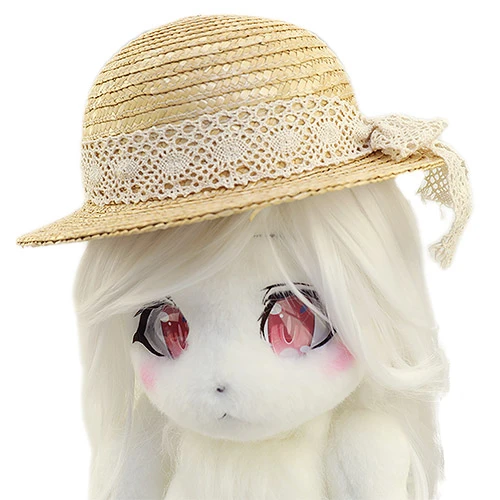 あえて耳を隠してみました。麦わら帽子は52cmを使用。帽子の中が耳でぎゅうぎゅうなので、ちょっと動かすと帽子が落ちやすいです。