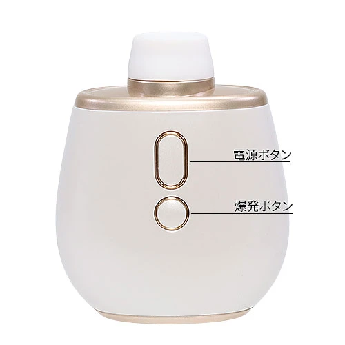 電源ボタンを2秒以上長押しで電源のON/OFFを切り替え。電源が入った状態で電源ボタンを押すと吸引の強弱が5段階切り替えられます。 爆発モードは2秒以上長押しで吸引が瞬間的に強くなります。説明書には吸引の強さが最大になると書いてありますが、1段階目と2段階目は爆発モードにしても5段階目にはなっていないように感じました。 花火モードの状態で、電源ボタンと爆発ボタンを同時に2秒以上長押しすると微電流の強さを3段階で切り替えできます。