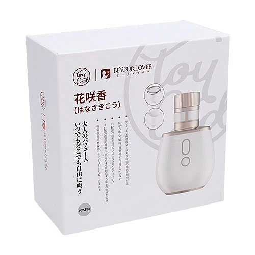 香水瓶をイメージしたおしゃれなデザイン、緊急停止が可能なタッチセンサー、リモコン操作、最大21段階の吸引強弱、微電流、さまざまな機能を搭載した吸引ローター「花咲香(はなさきこう) 吸うやつ花火」。