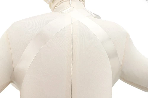 宇佐羽などダッチワイフに装着する場合、胴回りのベルトは取り外します。そして、肩紐をクロスさせ、胴回りのベルトが繋がっていた、おっぱいの脇にフックをかけるとフィットします。