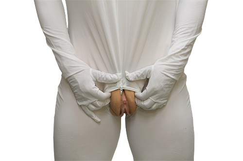 股間部分もチャック付き。開閉して性器を露出できます。