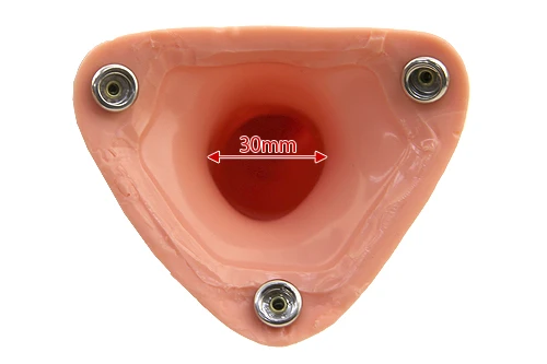 ディルド部分は亀頭と竿部分で色が異なります。これは見た目だけではなく、素材の硬さがそれぞれ異なります。竿部分は消しゴムを薄くしたような、そこそこ硬さのある素材。亀頭部分はプニプニ指で潰せる硬さですが、ほど良い弾力があり、挿入しづらいと感じることは少ないと思います。