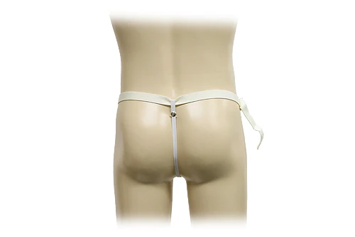 股下に通す部分はゴム紐になっているのですが、長さは約19cm。ゴム紐なので伸縮するものの、少し頼りなさを感じました。 ウェストサイズは、平置きで最大約80cmとMサイズ程度。体格のいい方が装着するのは難しいサイズです。