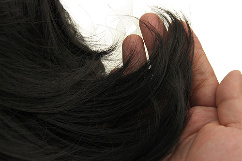高耐熱性繊維(減光沢PET)100%を使用。 いかにもウィッグというイヤなテカリはありません。
