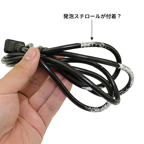 電源コードに発泡スチロール?のようなものが付着していましたが、かさぶたのようにはがせました。