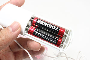 電池BOX 単3電池2本使用(付属) 付属の電池はマンガン電池ですが、アルカリ電池を使用するとパワーがアップします。